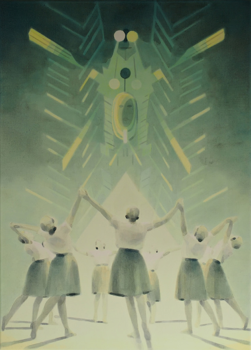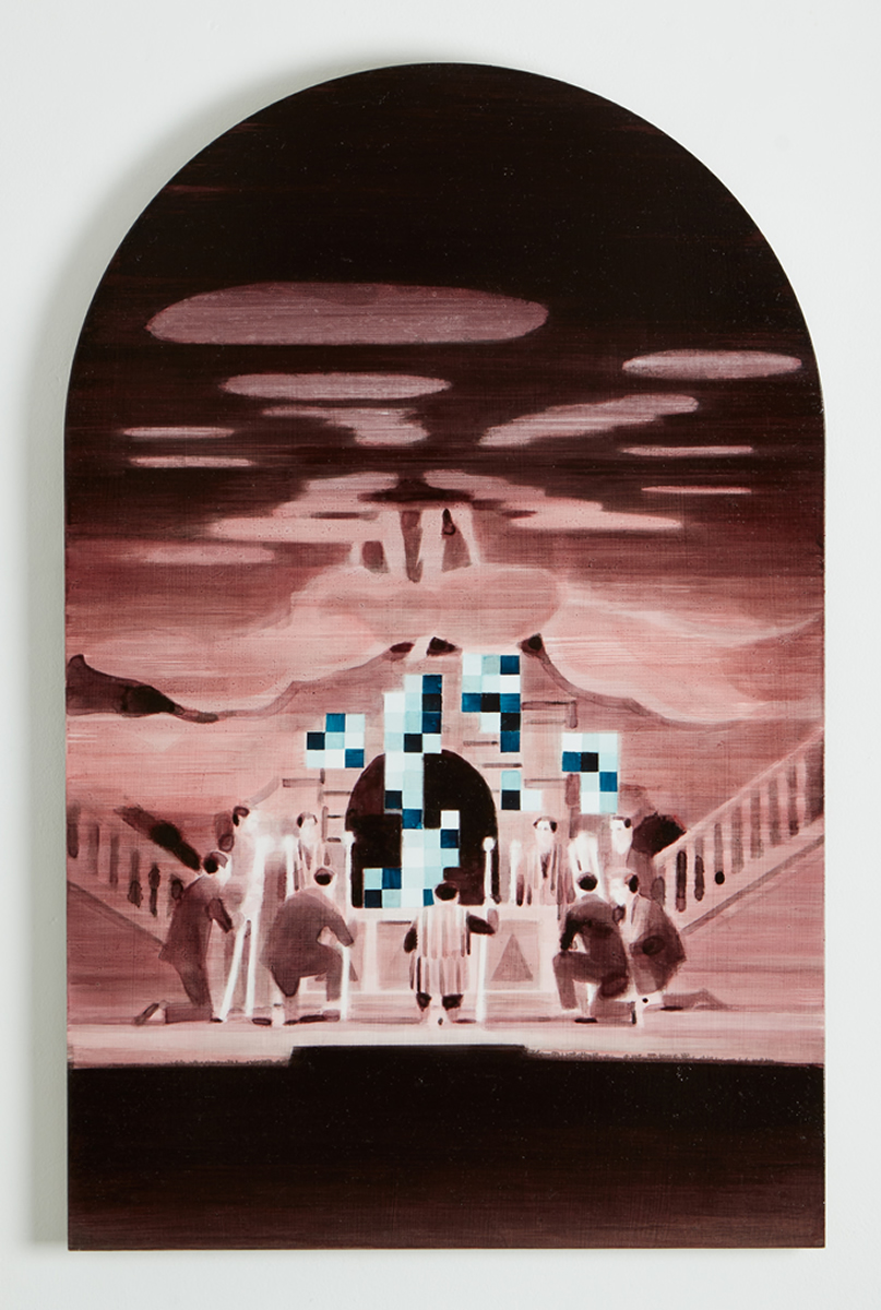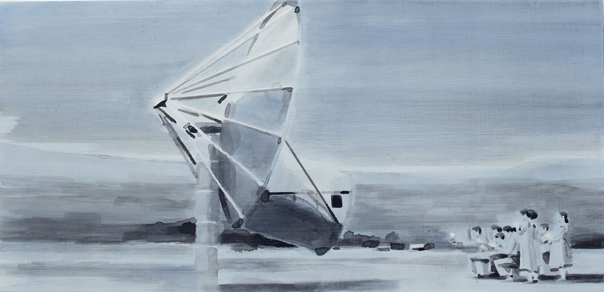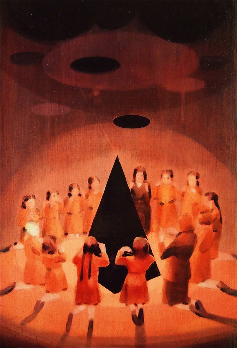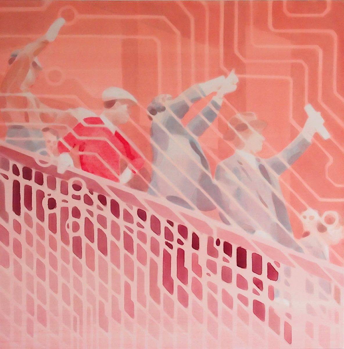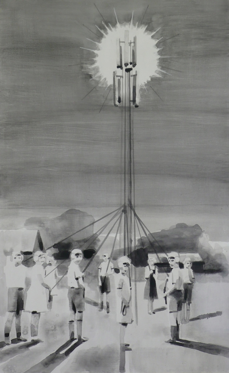 Dix’ palette of muted colours, hazy imagery and subject, anchor the work in a time of historical optimism. Referring to the imagined futures of our predecessors his deployment of colour links the subject of contemporary technology to its 1950s origins. This has led to the production of work that invites the viewer to engage in a secular celebration, whilst questioning past and present forms of ‘social networking’ within community and the common ground that may exist between them and their effect on society.