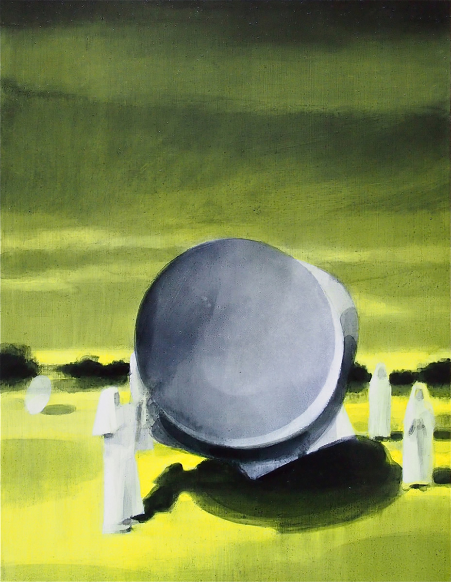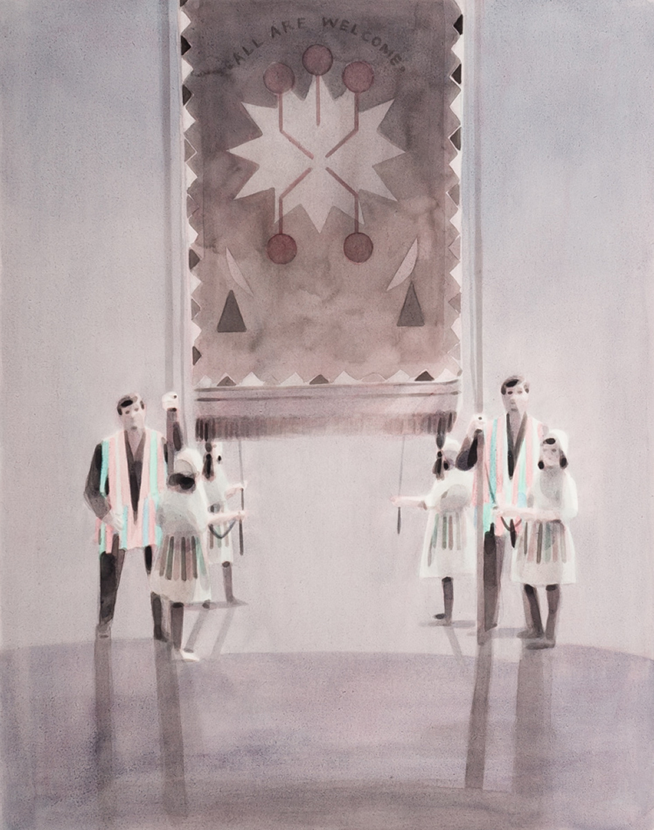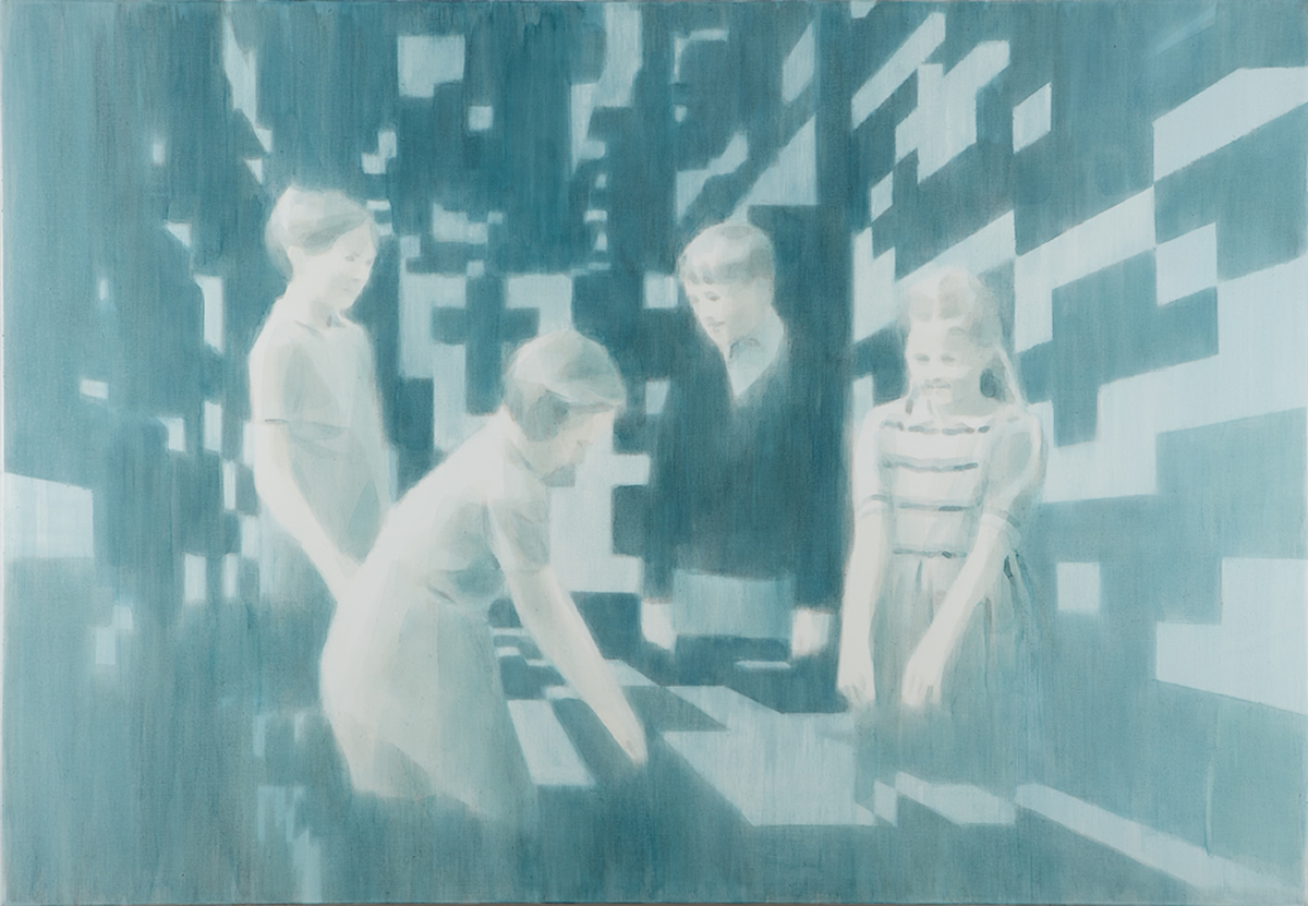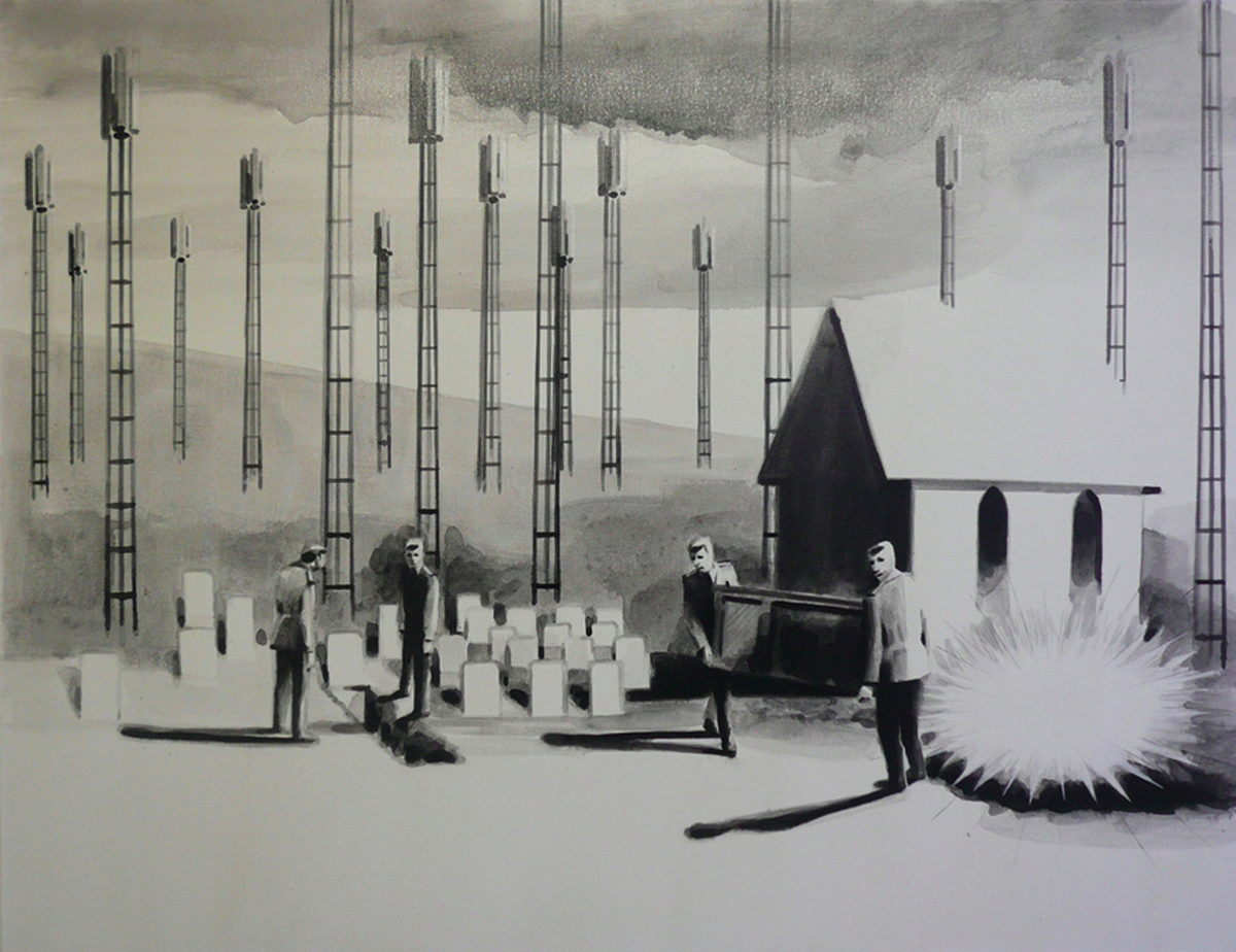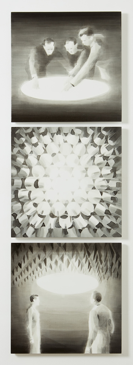Dix’ palette of muted colours, hazy imagery and subject, anchor the work in a time of historical optimism. Referring to the imagined futures of our predecessors his deployment of colour links the subject of contemporary technology to its 1950s origins. This has led to the production of work that invites the viewer to engage in a secular celebration, whilst questioning past and present forms of ‘social networking’ within community and the common ground that may exist between them and their effect on society.