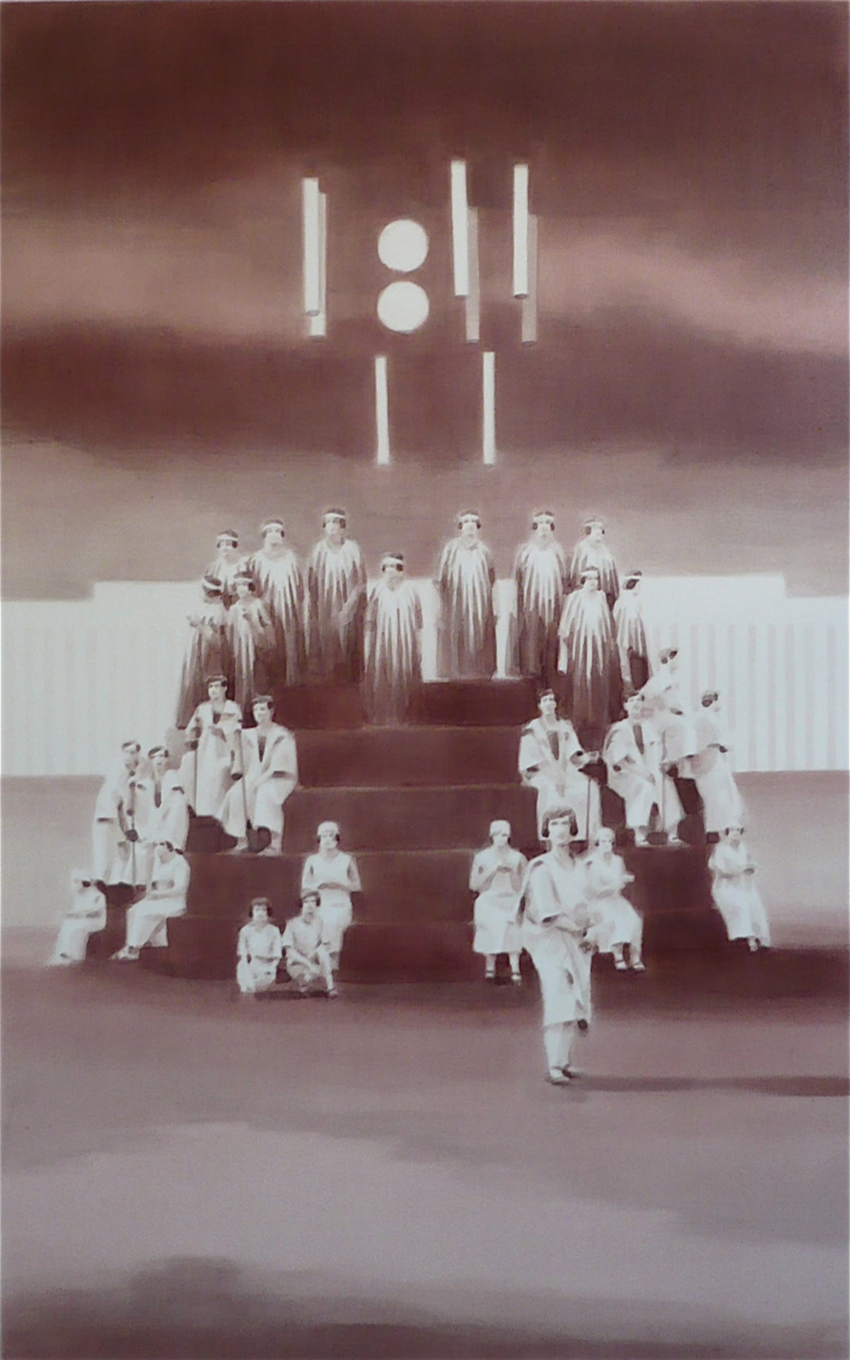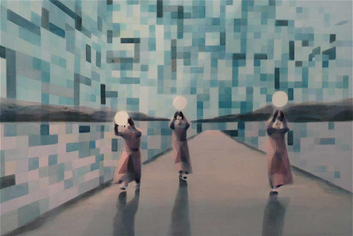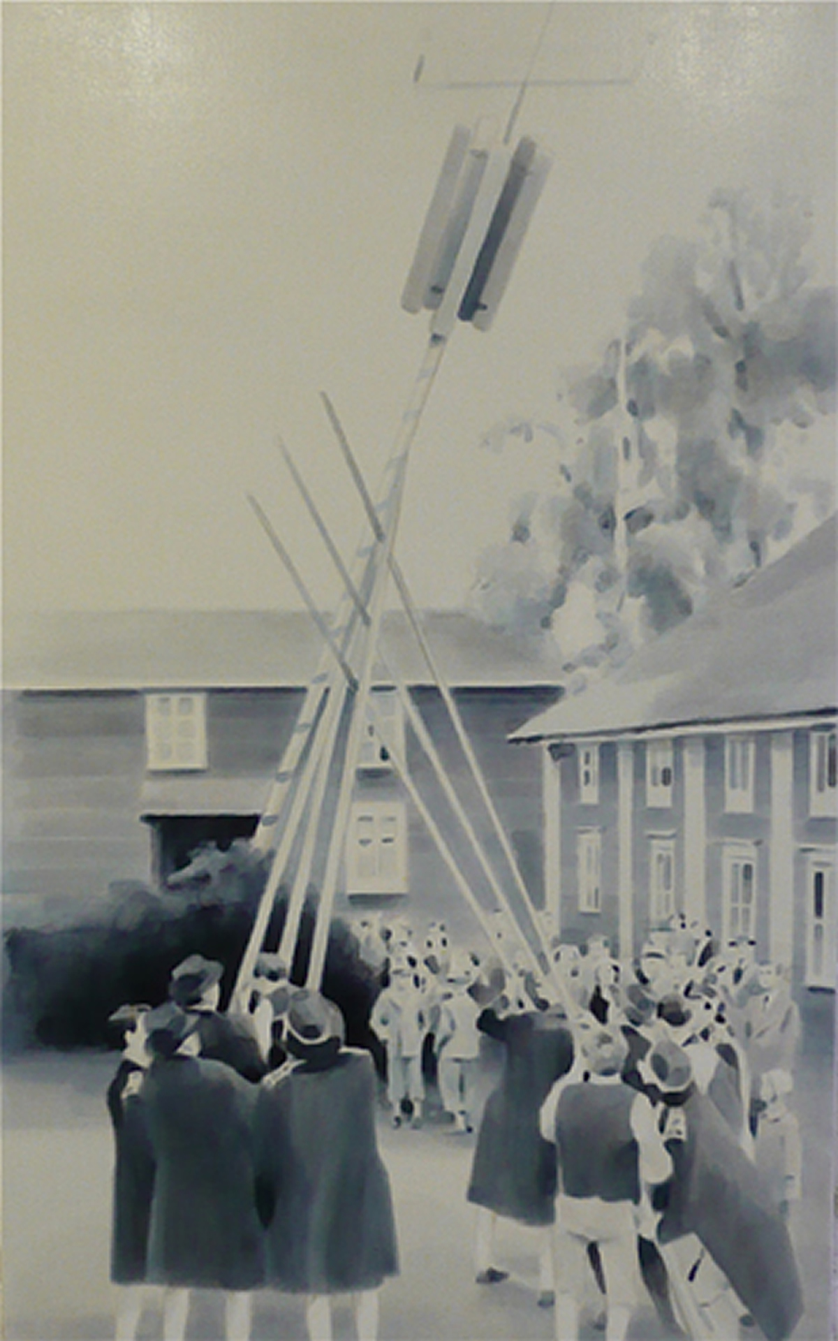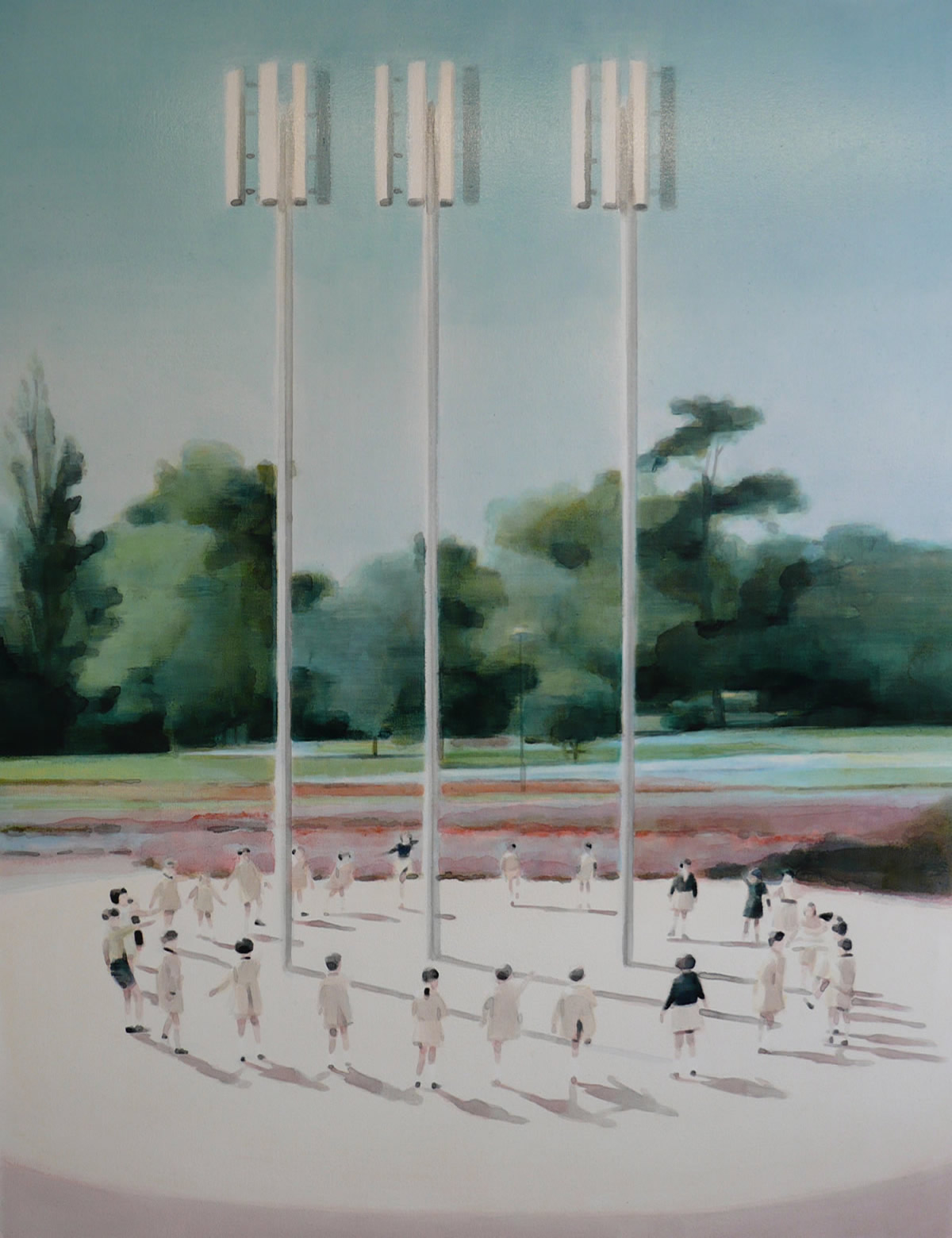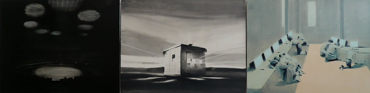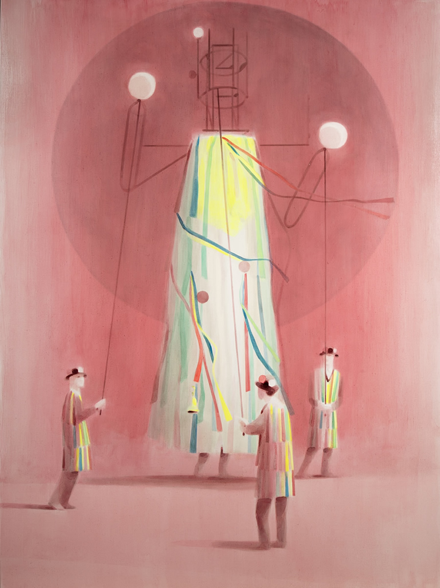 Dix’ palette of muted colours, hazy imagery and subject, anchor the work in a time of historical optimism. Referring to the imagined futures of our predecessors his deployment of colour links the subject of contemporary technology to its 1950s origins. This has led to the production of work that invites the viewer to engage in a secular celebration, whilst questioning past and present forms of ‘social networking’ within community and the common ground that may exist between them and their effect on society.