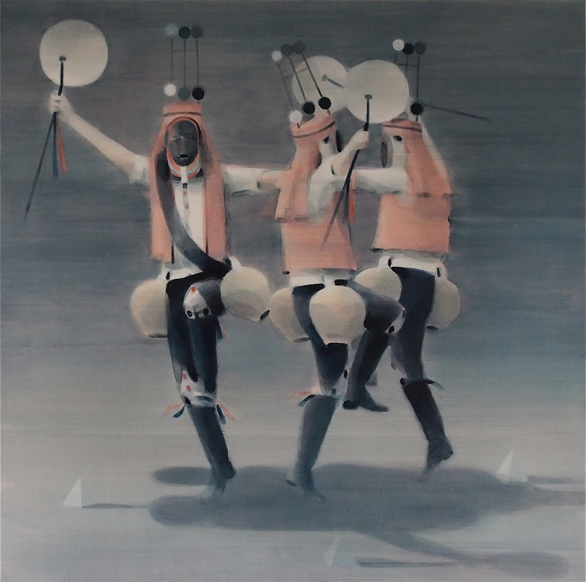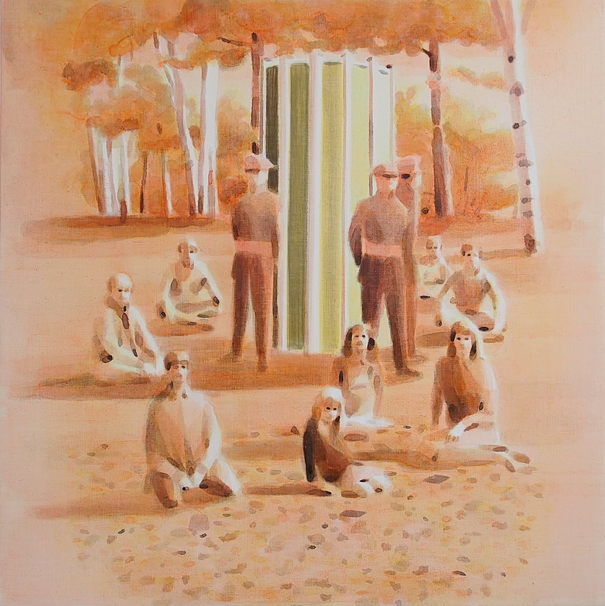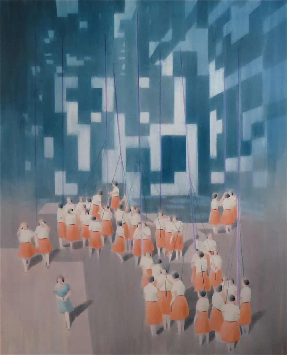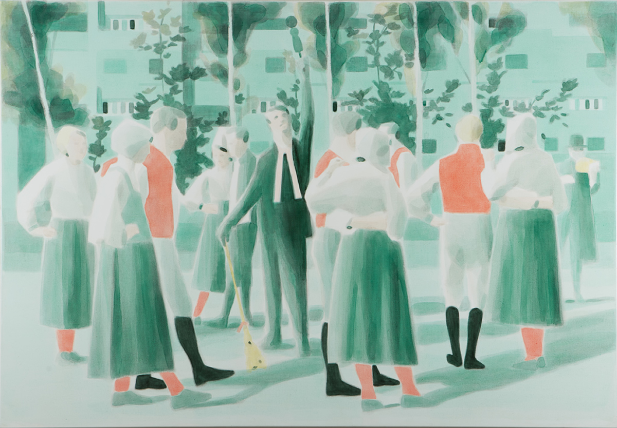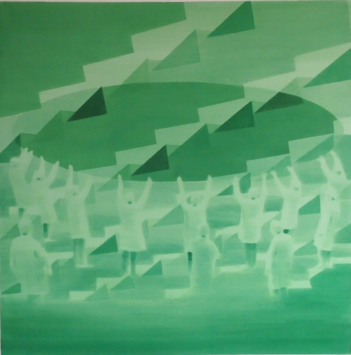 Dix’ palette of muted colours, hazy imagery and subject, anchor the work in a time of historical optimism. Referring to the imagined futures of our predecessors his deployment of colour links the subject of contemporary technology to its 1950s origins. This has led to the production of work that invites the viewer to engage in a secular celebration, whilst questioning past and present forms of ‘social networking’ within community and the common ground that may exist between them and their effect on society.